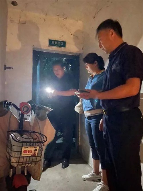 社区工作人员、居民志愿者及物业员工一同对小区楼道内消防通道的杂物等易燃物品堆积问题进行摸排,通知违规住户清理楼道、合理停放电动车。