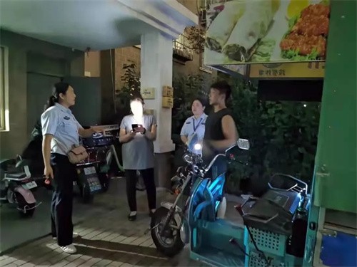 9月23日晚,合肥路管区组织华都、春光山色等社区开展电动自行车安全隐患排查活动,对电动车进楼、飞线充电等行为进行劝导和制止。