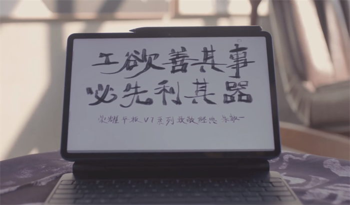 与此同时,荣耀平板V7还联合跨媒体艺术家朱敬一推出态度视频,进一步展示出在强大互联、轻巧手写、便捷操作等优秀生产力支持下,荣耀平板V7成为连接科技与传统的最佳载体。