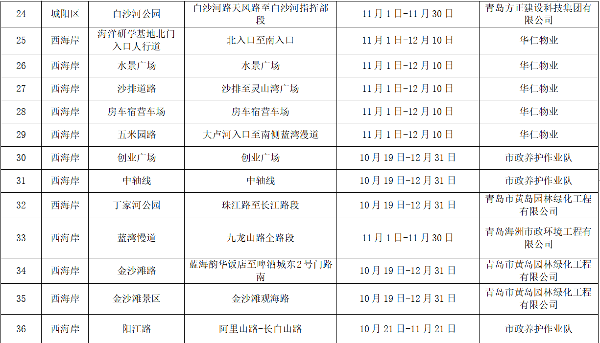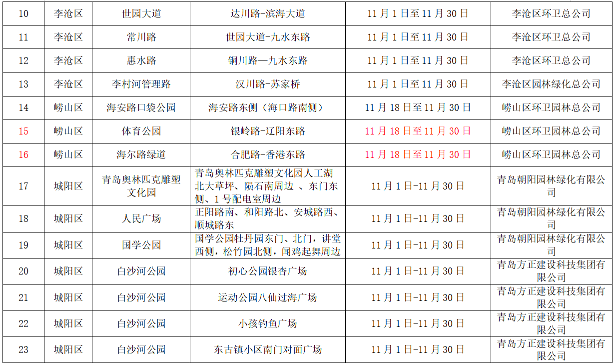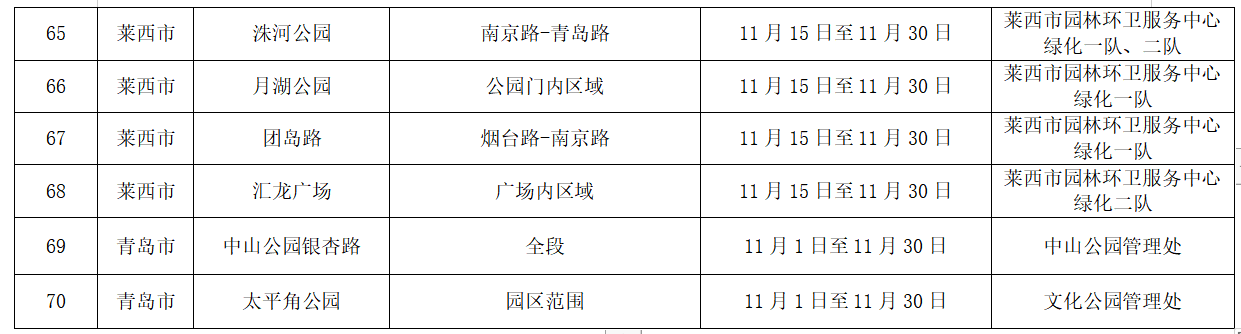 据悉,市城市管理局通过走访调研,在去年36条(处)落叶缓扫道路区域的基础上,继续扩大范围,将一些公园广场、景观道路等市民游客心目中的“网红打卡地”纳入今年的“落叶缓扫”实施范围,使今年的总量达到70条(处)。其中的蓝湾漫道、金沙滩景区、三里河公园等景点公园,已纷纷成为市民“近郊游”的热门选择。