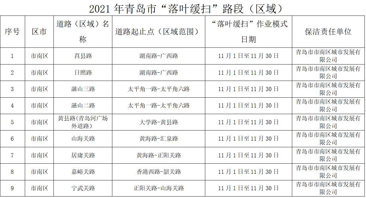 秋日的青岛天朗气清、色彩斑斓,目光所致皆是美景。为了满足广大市民漫步秋日时节观赏落叶美景、体味岛城秋色的需求,让往来游客留下对岛城五彩秋景的美好记忆,青岛市城市管理局确定了2021年70处实施“落叶缓扫”的道路区域,倾力为市民游客打造放松身心、拥抱自然的优美环境。