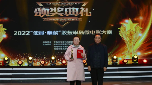 2022年1月9日,由青岛市文学艺术界联合会指导,胶东半岛影视行业联盟、青岛市影视制片人协会、青岛微电影协会共同主办的“2022‘使命·奉献'胶东半岛微电影大赛颁奖典礼”在青岛广电影视剧场圆满落幕。