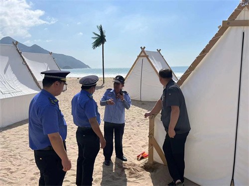 执法人员联合西麦窑社区、东麦窑社区、流清河社区等相关部门,采取联合执法,突击检查等方式,对流清沙滩整治目标逐处清理。截至目前,累计清理各类摊点11处,临时棚体30余处,劝阻游客50余人次,综合秩序明显好转。执法人员表示,“作为一座旅游城市,沙滩大海是我们的名片,要保护好、规范好旅游秩序,让游客玩的舒心,玩的放心,提升游客的旅游体验。”