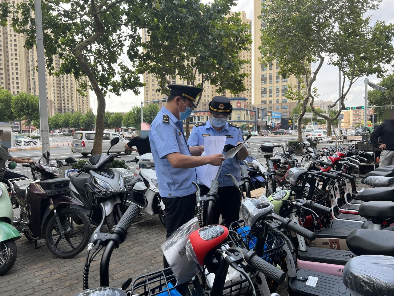 在现场,李沧区市场监督管理局浮山路市场监管所副所长徐烜带领工作人员重点对电动自行车产品基本信息和整车、蓄电池、电动机、控制器的主要技术参数是否与产品合格证、使用说明书明示信息一致,是否销售和CCC证书载明的形式不一致、无CCC认证证书、伪造CCC认证证书、无厂名厂址等来源不明产品,是否存在擅自改装原厂配件、拆除限速器等关键组件等方面进行了检查。执法人员在检查的同时加强对经营业户的法律法规和电动自行车新标准的宣传。