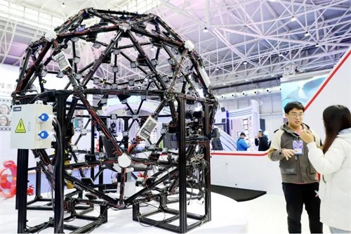 影眸科技工作人员正在介绍高精度数字科技装备——穹顶光场。王培珂 摄