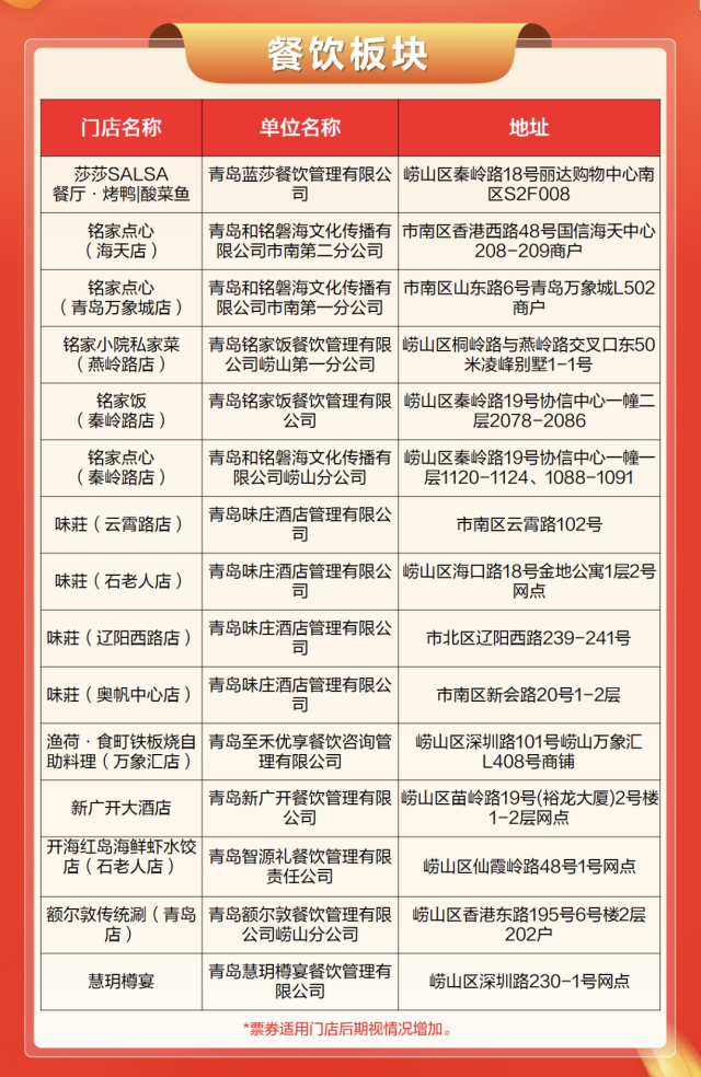 为进一步提振消费信心、稳定消费预期、推动消费全面复苏,由青岛崂山区政府主办的“嗨购崂山 惠享生活”春季促消费活动火热持续,感恩母亲节活动板块将于5月12日开始,此次活动主要涵盖大型商超零售、餐饮、电商家电、加油充电等领域。其中餐饮消费券由建设银行承接,参与渠道详见“建行生活”APP活动页面。大型商超零售、电商家电、加油充电等版块消费券由参与企业结合经营特点自主开展促销活动,具体活动细则见下方链接。