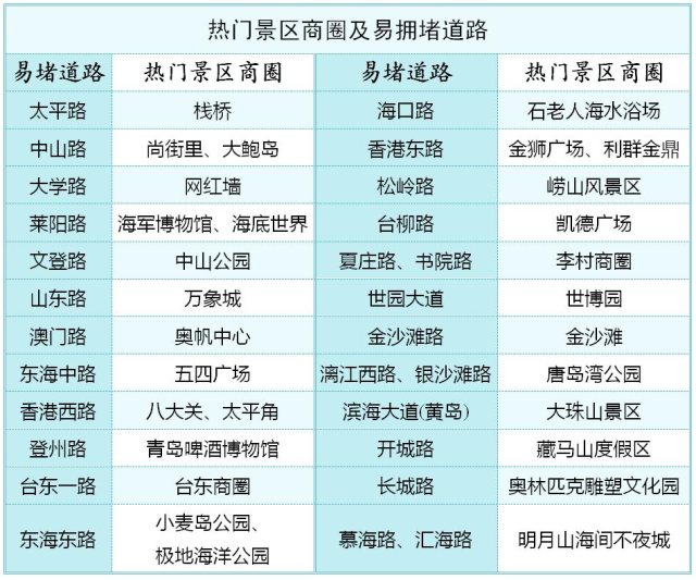 预计端午期间部分进出城路段、重点高速公路、国省道主干线的交通流量将大幅增加。其中胶州湾隧道、胶州湾大桥、青银高速青岛东收费站、李村收费站、青兰高速青岛西收费站、沈海高速黄岛段、铁山收费站、2号疏港高速隐珠收费站等区域易发生拥堵。环湾路、重庆路、黑龙江路、滨海大道等进出城主干道也将呈现车流量高位状态,缓行现象突出。