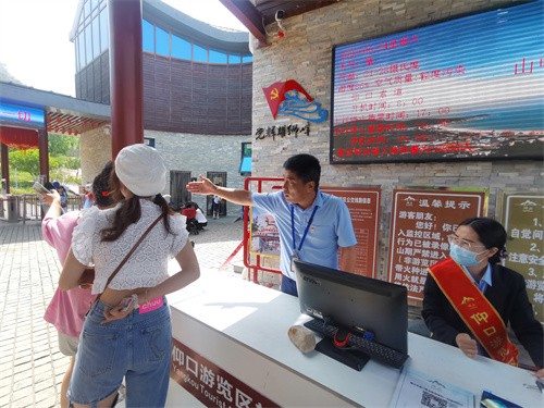 在崂山风景区各主要入口、景点,随处可见志愿者在进行文明旅游宣传,为游客提供旅游咨询、预约购票等服务。节日期间,崂山风景区全体工作人员提前上班、延时服务,迎着烈日为游客提供不打折的贴心服务,累计为数万名游客提供咨询引导服务,帮助游客寻人寻物百余次;96616全域旅游热线24小时在线,累计接听游客电话1956次,解决求助事项43次……每位景区人都在台前幕后为游客游览保驾护航,用最温暖的微笑,最贴心的服务诠释“最美景区人”的风采。“我们是第一次来崂山,不知道怎么游玩,由于我们几个都是老年人,工作人员帮我设计了一条不费体力的游览路线。怕我们记不住,她还贴心地将路线和景点名称帮我写了下来,态度真好,很有耐心!”谈到在崂山游览的经历,来自上海的王阿姨止不住地称赞。