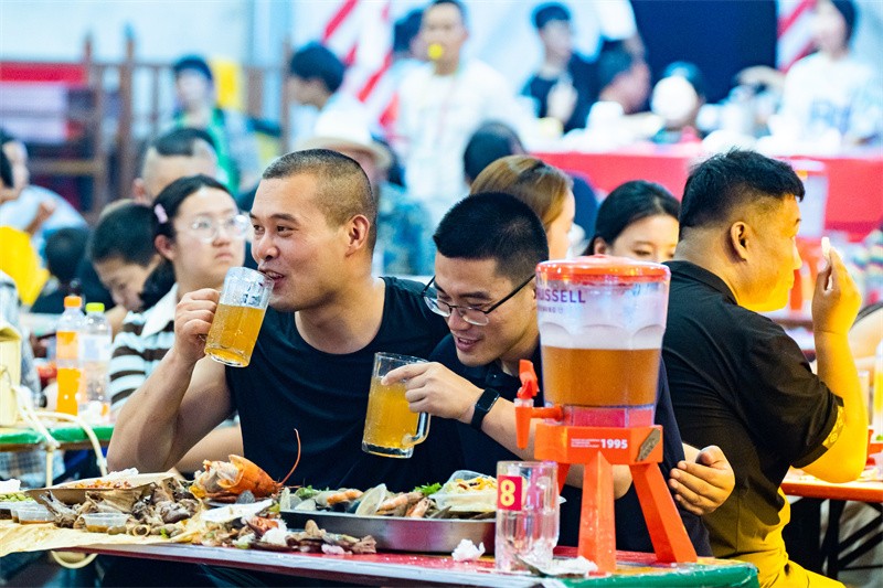 除了品种丰富、口感独特的各类啤酒之外,大篷内还设有美食区,种类丰富的青岛本地海鲜、烧烤等各色美食一应俱全,还特别引进了国信集团的野生大黄鱼,食材新鲜现场制作,为游客带来美妙舌尖体验。CC组合,三个女孩乐队,网红歌手,原创音乐人以及摇滚DJ等来自各地的艺人也汇聚一堂,每晚为市民游客献上精彩纷呈的演出。