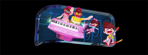 在“嘻哈宇宙”板块里,哈舅和哈舅妈身着潮流服饰,化身DJ潮人,帅气打碟,驾驶粉色钢琴键飞船闪亮登场,引导大家共同律动起来。哈小欢、哈小满姐弟俩,化身乐队主唱和贝斯手,配合音浪一起摇摆。在乐队的烘托下,在炫酷的节奏中,让观众一起沉浸在音乐的氛围里吧。
