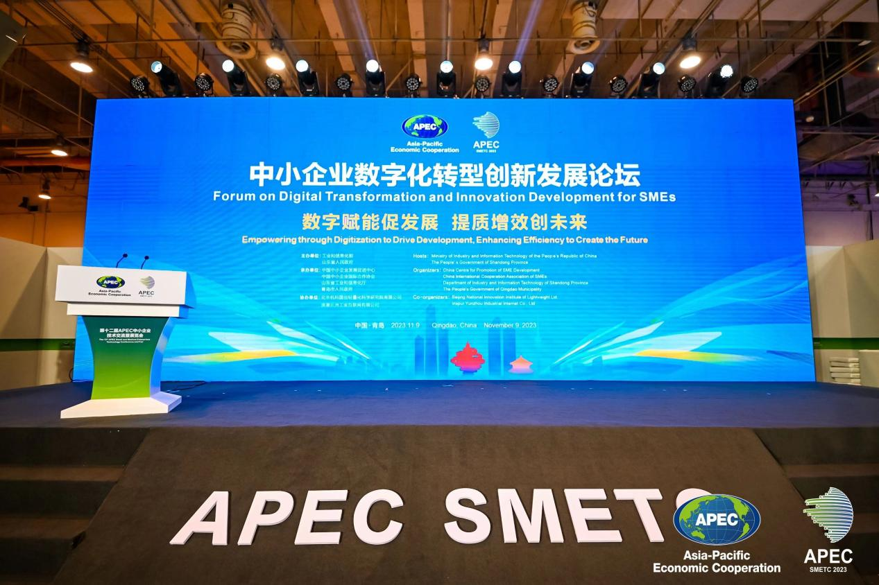 11月9日,以“数字赋能促发展,提质增效创未来”为主题的中小企业数字化转型创新发展论坛在青岛市举办。该论坛是第十二届APEC中小企业技术交流暨展览会的系列活动之一,由中国中小企业发展促进中心、中国中小企业国际合作协会、山东省工业和信息化厅、青岛市人民政府共同主办, 200余家中小企业参会。