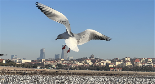 在这场长达数十年的双向奔赴里,无论是海鸥还是青岛,双方都未曾缺席每个冬日的浪漫约定。从1994年开始,青岛在全国率先发起“挽留海鸥行动”,市民和游客踊跃参与人数达上百万人次。近年来,青岛市以生态文明建设为引领,协调人与自然关系,不断加强生物多样性保护,共建地球生命共同体。随着保护意识的提高,生态环境的好转,让这群来自远方的朋友从“过客”变成了“常客”,青岛的海鸥数量从早期的2000只增长到了现在的近10万只。青岛这座美丽的海滨城市,也因为沙鸥翔集,多了一份人与自然和谐共生的神韵和活力,飞鸟漫天也让青岛这个原本温暖的城市显得更加热闹。