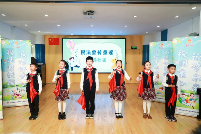 活动上,青岛市市南区实验小学教育集团(区实验校区)的小法治宣讲员们为大家进行了精彩的税法宣传,将税法的精神传达给在场的每一位观众。