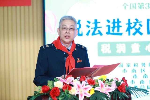 随后,陈绪发在启动仪式上进行了热情洋溢的致辞,鼓励同学们要从小主动了解并学习税收知识,将来成为一名建设国家、奉献社会、建功立业、依法纳税、受人尊敬的纳税人。