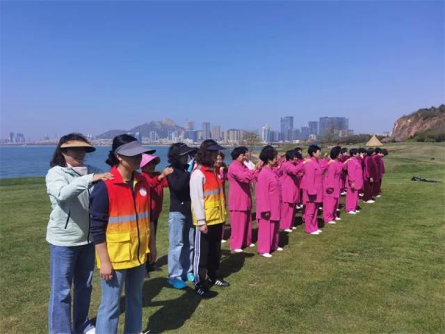 活动在美丽的海边草地上举办。晴空之下,微风吹拂,大家跟着节奏旋律,一边拍打身体,一边朗诵与家风、家训相关的名言警句,在强身健体的同时,学习中华优秀传统文化知识,传承良好家风。