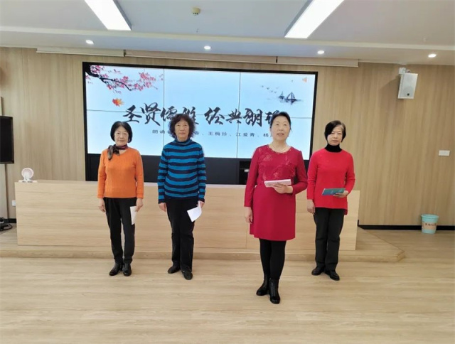 传承文化,经典诵读。近日,东城国际社区“经典诵读”朗诵班开展了诗歌朗诵、爱国宣讲、红歌欣赏等丰富多彩的展演活动。一首首慷慨激昂的诗歌、一句句铿锵有力的话语萦绕在东城悦享厅的上空。诵读表演者激情飞扬、情绪饱满,他们用简洁、优美的话语诵读着经典篇章,在学习经典颂文的同时领略中华优秀传统文化的博大精深。