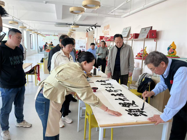 活动现场,翰墨飘香,意蕴悠长。原山东省文化厅厅长、崂山区委书记亢清泉,中共青岛市委宣传部原副部长、青岛市文广新局原局长姜正轩,青岛市文广新局原副局长、青岛市慈善总会文化艺术界慈善分会副会长、青岛市慈善书画院院长殷庆威,青岛崂山王哥庄大馒头协会会长刘竹莲等出席活动现场;市北区文旅局原局长程方厚,市北区文旅局原副局长高环光,青岛广视达文化传媒总经理王天军,以及青岛市慈善书画院的艺术家代表中国书法家协会会员、原青岛市书法家协会副主席张景,青岛中艺书画院副院长于一保,青岛黄海美术馆馆长匡乃智,以及岛城知名书画艺术家李大力、李青、薛俊家、吕文远、宋诚等一行,先后参观了现代化的王哥庄大馒头产业园,体验了大馒头非遗文化传承的独特魅力,纷纷感叹“‘崂山王哥庄,百年馒头香’不仅是知名的非遗品牌,更是传承有城市文脉宝贵价值的文旅IP,具有显著的社会效应和经济价值。”