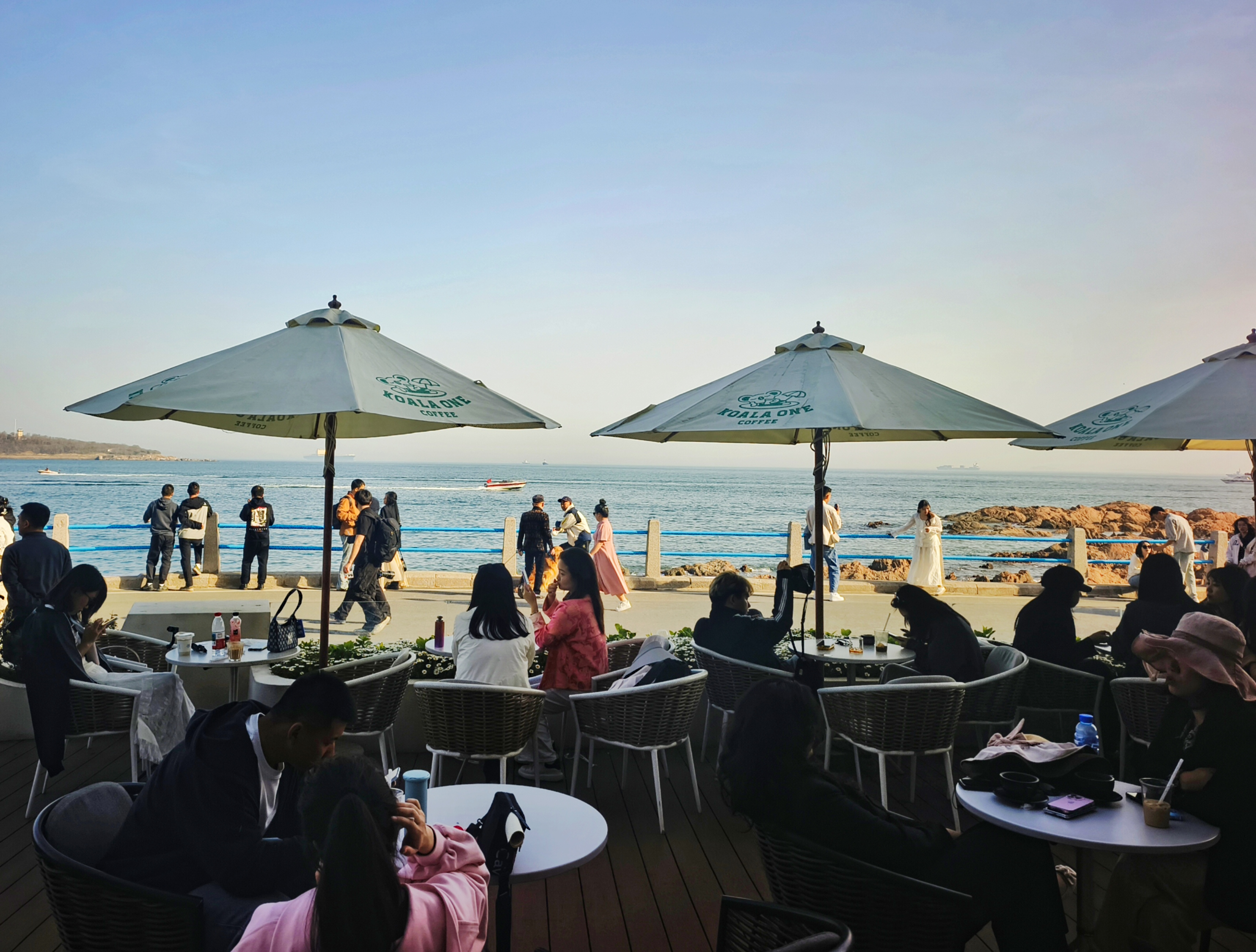 “无敌海景”,是众多来青打卡网红景点的旅人最看重的体验。在青岛,“可以看见海”的咖啡馆,与山海相衔的景观一道,成为城市风貌的“标配”。在太平角一路的沿海一线,伊美罗薇海景咖啡、莫奈花园海景咖啡、Reef咖啡、Sòf 咖啡……几百米的距离内,集聚了大大小小数十家咖啡馆,形成了独具特色的青岛“咖啡角”。