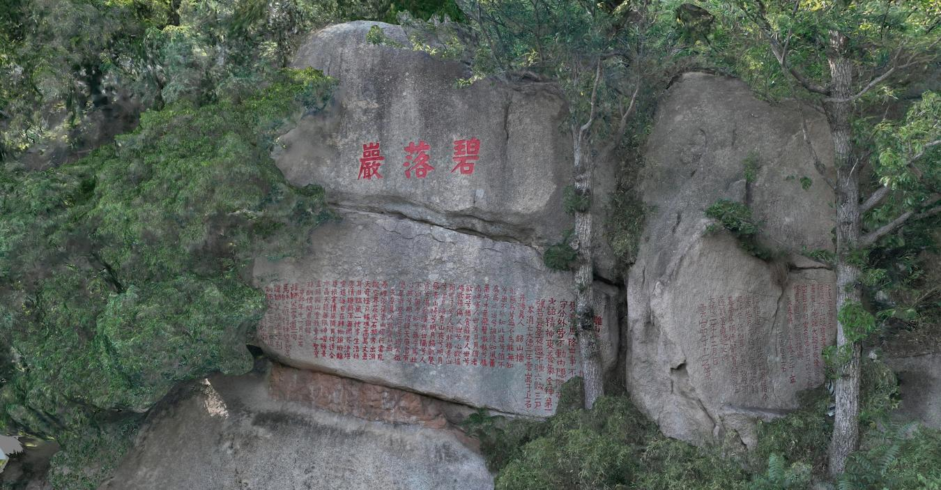 三维倾斜拍摄,提取文物原始数据。针对省级文保单位“崂山摩崖石刻群”多而分散,且大多数处于丛林茂盛深处普查艰难的情况,崂山区引入国际测绘领域近年来兴起的高新技术——三维倾斜摄影技术,探索尝试绘制石刻立面图,全面掌握文物的立体几何形貌,获得更精准、多维度的原始数据资料,为后期管理保护提供数据支撑。