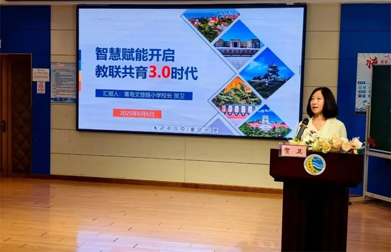 贺卫以《智慧赋能开启教联共育3.0时代》为题,系统阐述了学校作为青岛市首个小学家庭教育学科基地的探索路径。她强调,教联共育3.0时代的学校将以“教联体”理念为核心、智慧技术为纽带,打造连接家庭与社会的教育枢纽。