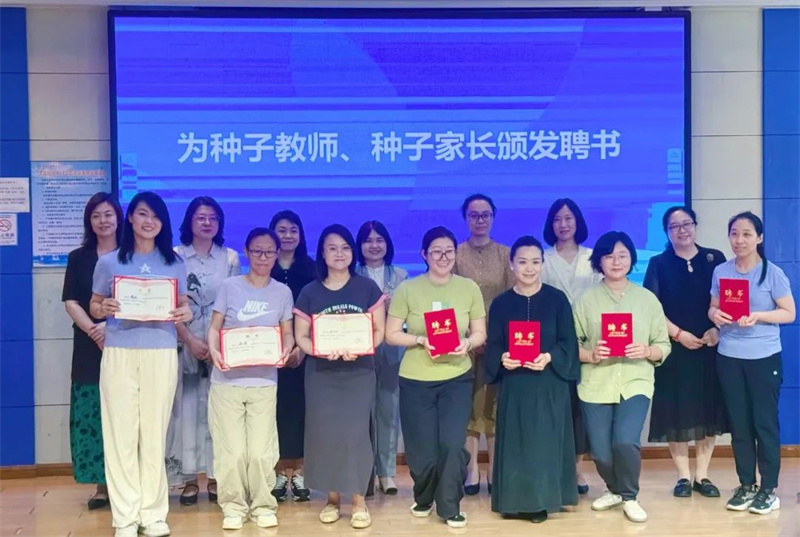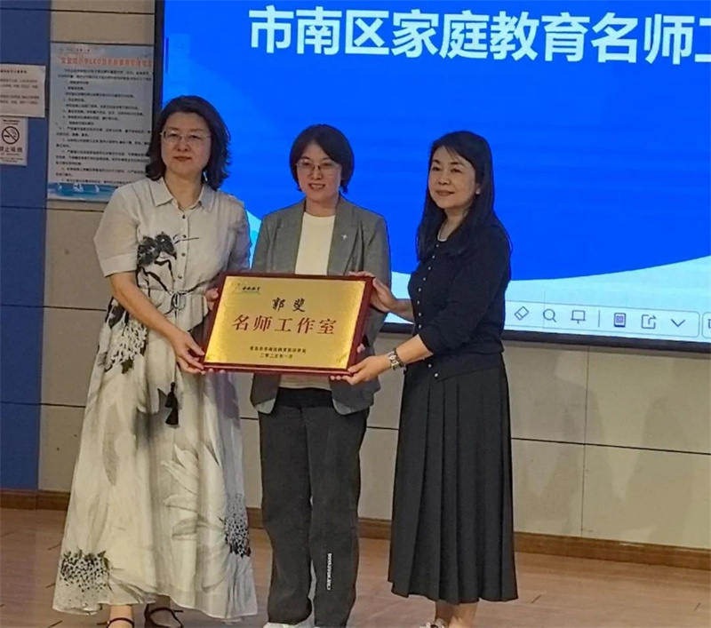 刘名卓、王秀婷、刁丽霞、王蕾、从德娟、贺卫、王雅楠共同参与华东师范大学“校家社协同育人联盟校”启动仪式。随后,与会领导为种子教师、种子家长代表颁发聘书,并为市南区郭斐家庭教育名师工作室授牌。这一举措标志着区域校家社协同育人机制从“实践探索”迈向“专业化引领+品牌化建设”新阶段,为家庭教育专业化发展奠定坚实基础。