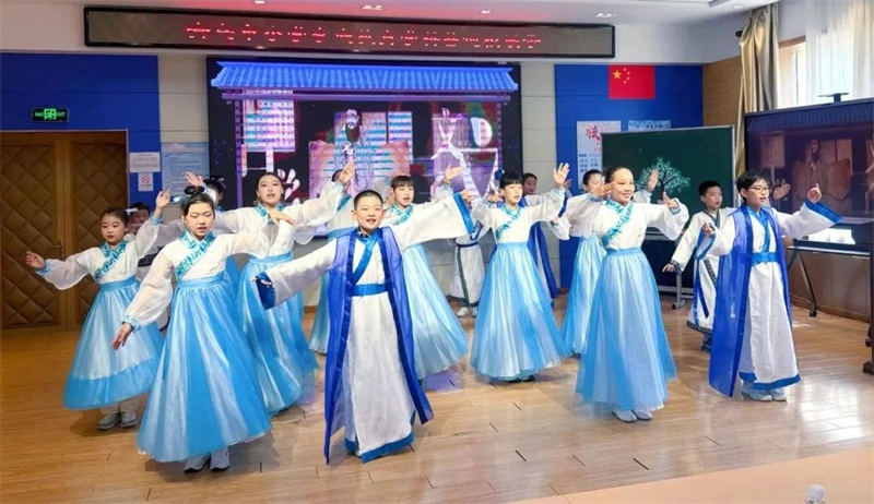 青岛文登路小学学生带来的表演唱《家风礼序》,以朗朗童声传递中华优秀家风文化,将素养展示环节推向高潮。