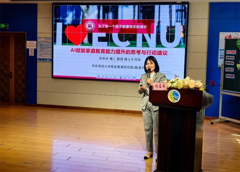 刘名卓以《AI赋能家庭教育能力提升的思考与行动建议》为题作专家报告,结合前沿理论与实践案例,深入剖析家庭教育在新时代的定位与挑战,并从共同体构建逻辑出发,解析数智技术应用策略,为区域家庭教育实践提供了理论指引与实操路径。
