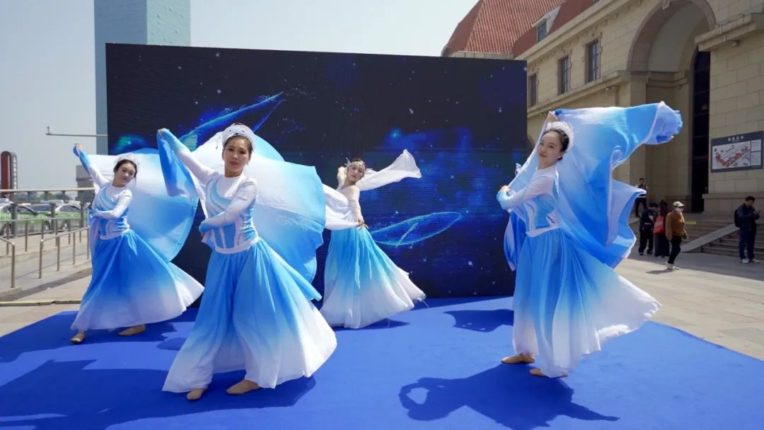当天下午,文旅路演推介在青岛火车站东广场火热开场。开场舞蹈点燃现场氛围,为这场文旅盛宴拉开精彩序幕。