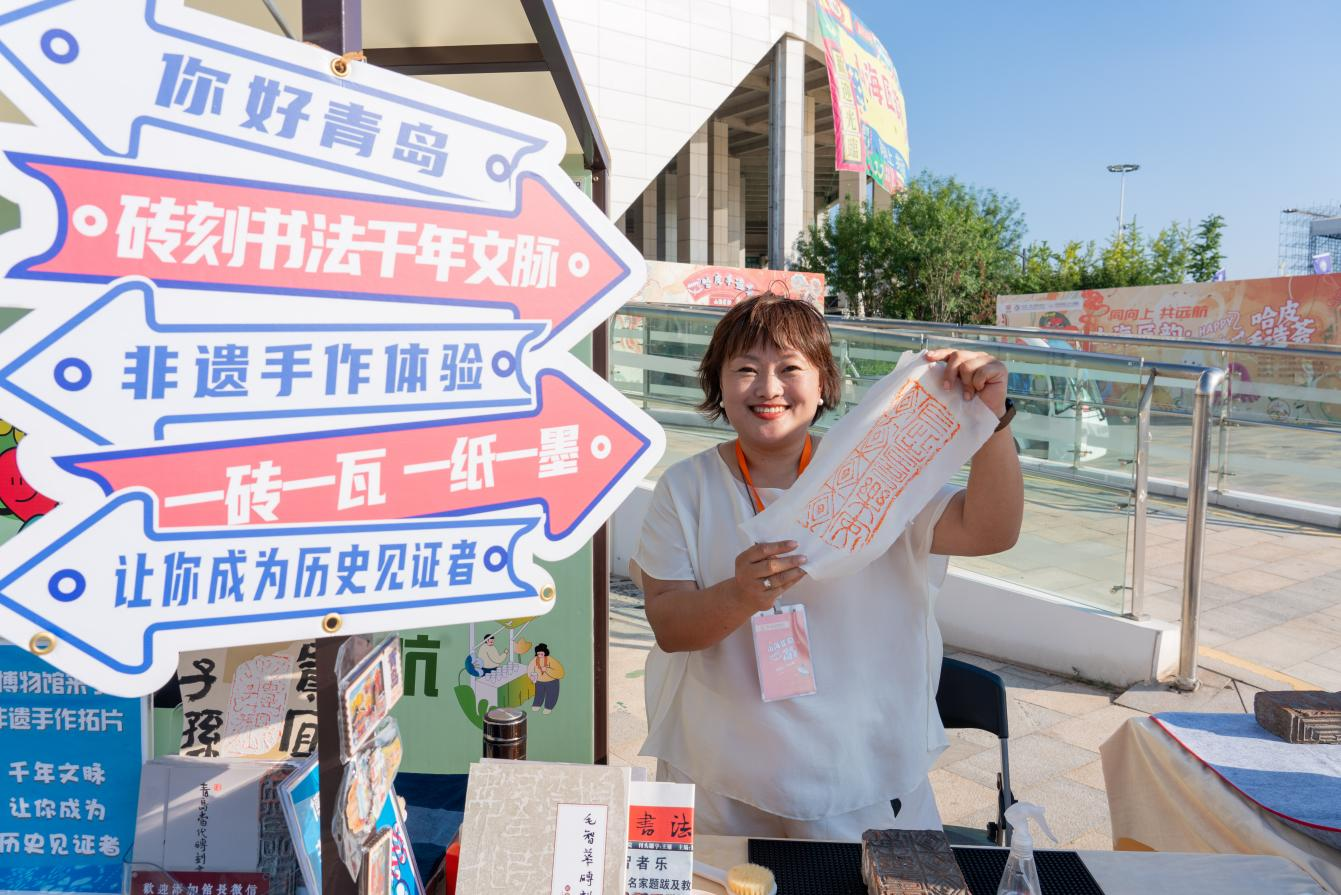 “方寸砖石,承载千年。我们将砖刻书法这一传统技艺,带到啤酒节这个国际舞台上,希望通过我们的技艺展示,把千年文化用当代的语言诉说出来,也让更多的年轻人和外地游客了解西海岸新区悠久厚重的文化底蕴。”冷梦雪说。