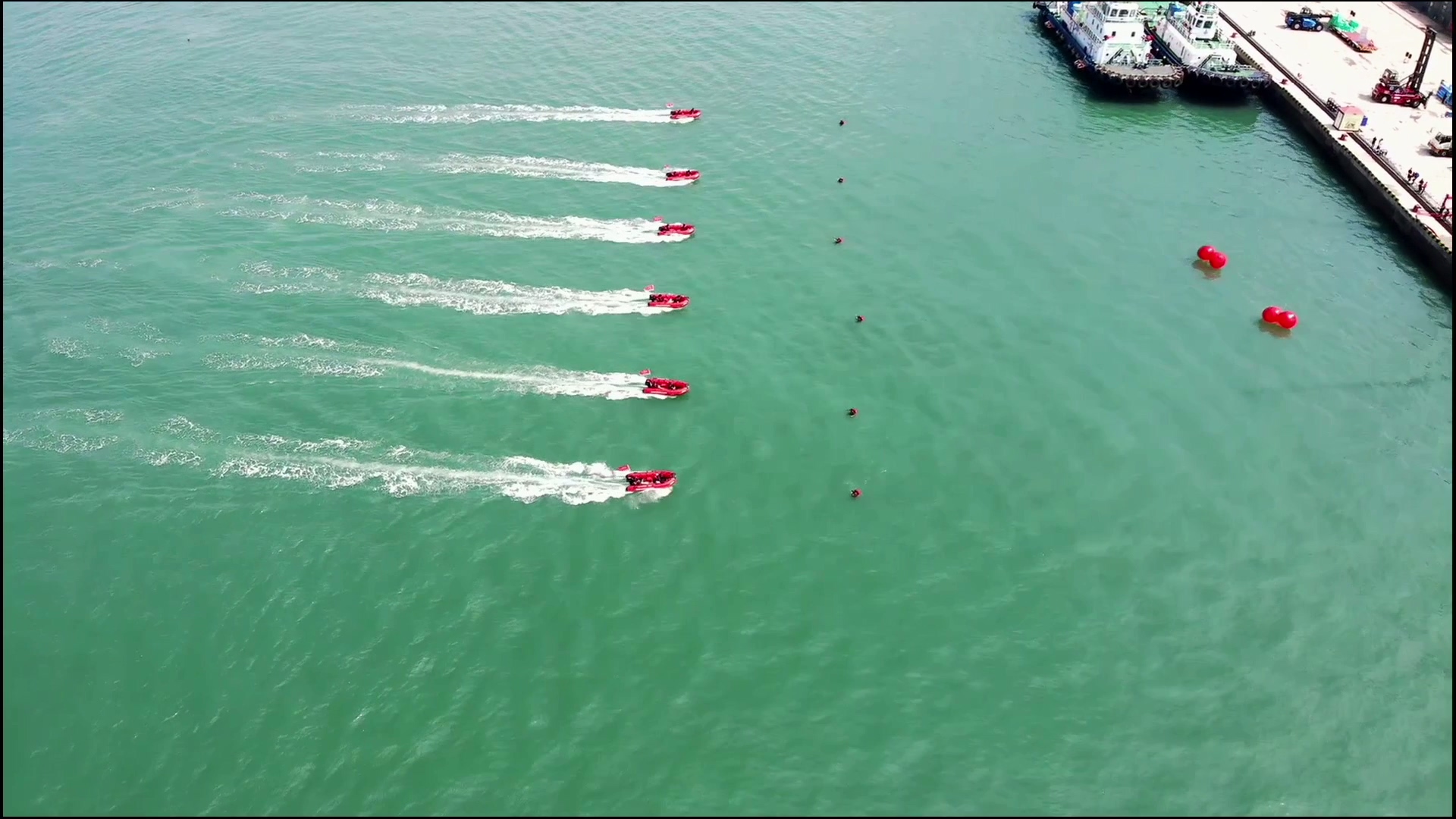 图为青岛港应急救援公司的“飞艇救援”绝活表演。
