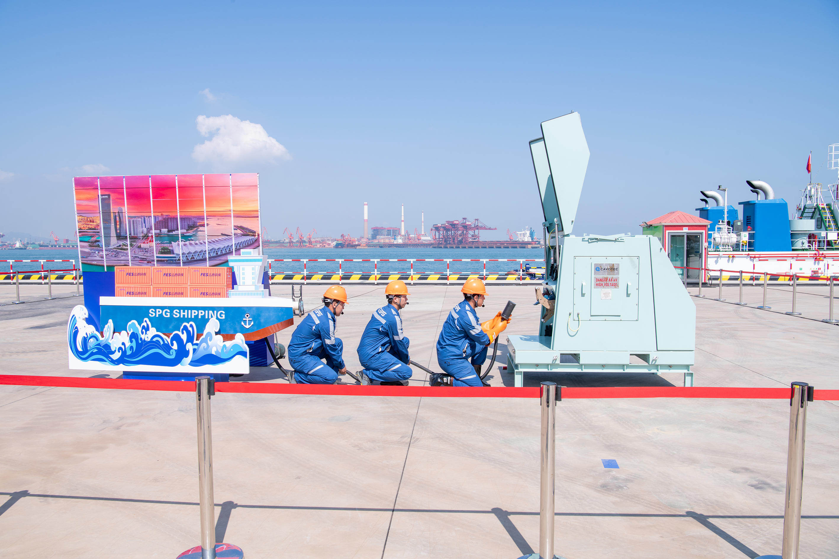 图为青岛港供电公司的“高效连船”绝活表演。