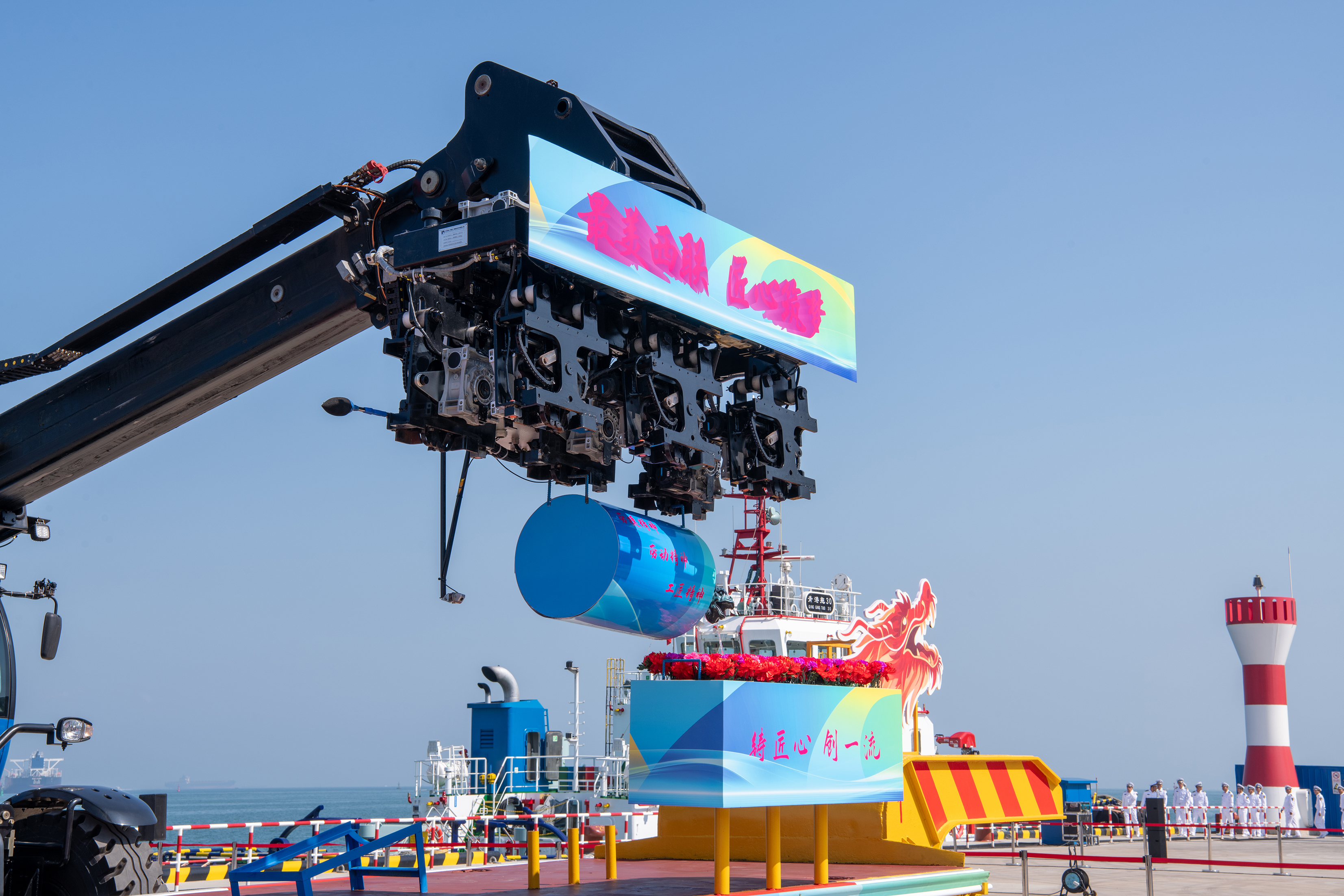 图为青岛港董家口分公司的“毫厘乾坤”绝活表演。