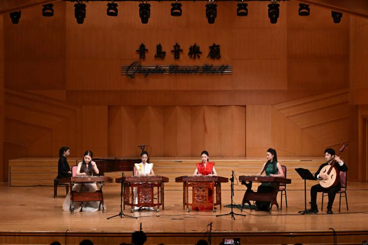 作为青岛籍学子,谭诺潇、周姝涵在2024、2025年先后以专业第一的成绩考入中央音乐学院附中,师从扬琴演奏家、中央音乐学院扬琴教师马英俊。作为特邀嘉宾,中央音乐学院青年教师、钢琴艺术指导栾景旭,阮专业硕士研究生陈隆以及中央音乐学院扬琴专业优秀本科生蔡杭烨、戴依彤一同参与了演出,为观众们展现出扬琴这一乐器的奕奕风采。