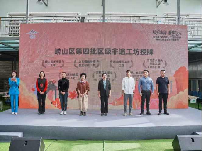 启动仪式现场,崂山区为获得第四批区级非遗工坊认定的崂山篆刻技艺非遗工坊等7处区级非遗工坊授牌,致敬这些以时光淬炼匠心回响,用技艺连接起记忆与未来的非遗工坊,让非遗之美生生不息。