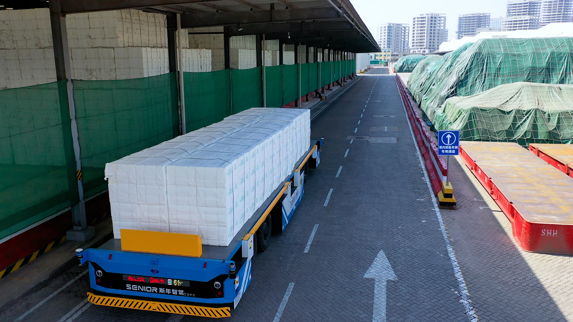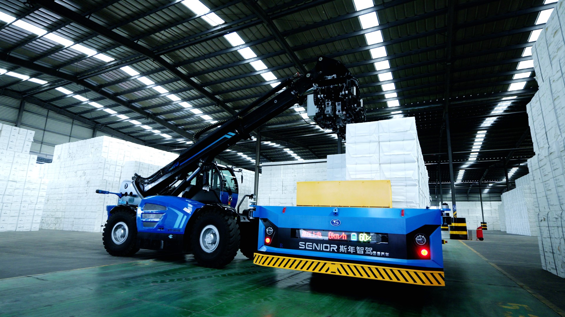 “破局点”在于精益管理。青岛港建立市场、现场、库场协同联动机制,纸浆出舱后稳稳放置在IGV上,再转运入库,库内伸缩臂叉车将纸浆进行码垛,实现“装卸-转运-堆存”无缝衔接。