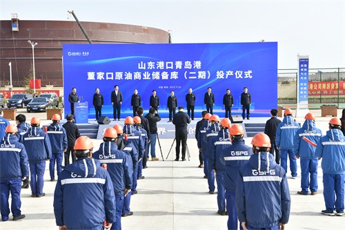 11月26日,山东港口青岛港董家口原油商业储备库(二期)正式投产,24座10万立方米浮顶油罐拔地而起,新增库容240万立方米,项目投产运营后,山东港口青岛港董家口港区库区设计年存储能力将突破906万立方米,成为山东港口最大的油品罐区。