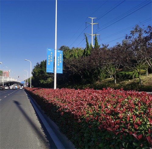 近日来,青岛市崂山区海尔路、劲松五路、深圳路、银川东路等多条道路的红叶石楠已经萌发出红色的嫩叶,鲜亮夺目。