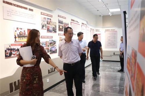 在中韩街道新时代文明实践所内,区委常委、宣传部部长,区委党史学习教育领导小组办公室主任黄应胜一行通过观看“凝聚蓬勃力量 锚定前进方向”——中韩街道高质量开展党史学习教育主题展板,了解街道党史学习教育开展情况。