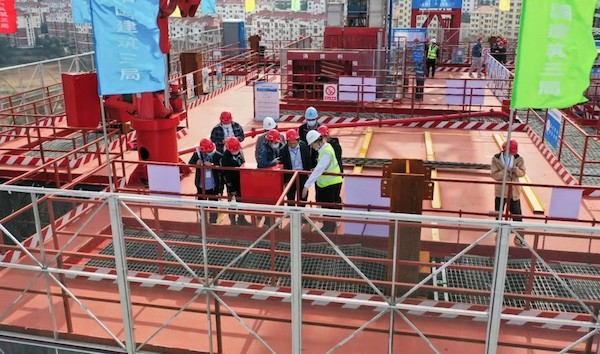 近日,由山东土木建筑学会主办,中建三局、中建三局一公司等单位协办的山东省绿色建造技术交流暨现场观摩会在山东威海顺利举行,来自行业内的400余名专家、从业者参加本次活动,感受“空中造楼机”4.0时代的智能化绿色建造技术,参观新一代智能顶模技术的实际应用。