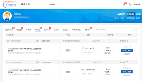 “平台”三期上线后,预计每年将实现500项政策线上申报,涉及惠企资金约100亿,全力助力青岛打造政策服务新高地和营商环境标杆城市。