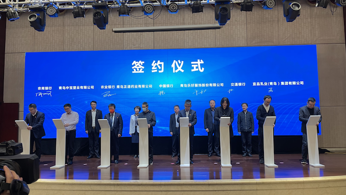 签约仪式上,青岛市已经达成合作意向的8家银行机构与8家企业签订了合作协议,致力于为企业破解融资难题,真正为企业纾困解难。