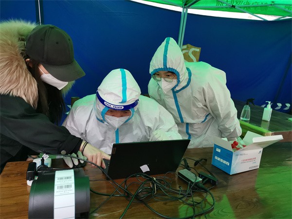 “感谢每一位工作人员的付出,他们特别有耐心。相信我们一定能战胜疫情!”参与核酸检测的五四广场社区居民郑女士说。