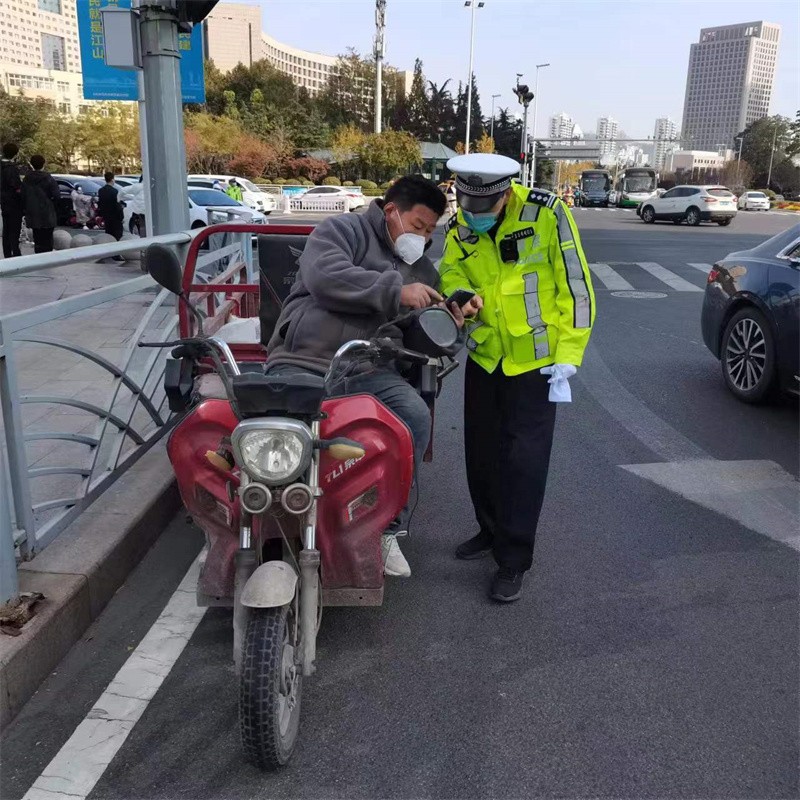 为进一步提高全社会交通文明程度,加强电动自行车道路交通安全管理,结合“冬季公路交通安全区域整治行动”,全力做好122“全国交通安全日”主题活动,有效应对冬季交通安全风险,消除安全隐患。 11月21日上午,交警市南大队在市南区主要交通路段,对电动自行车“不靠车行道右侧行驶”道路交通违法行为率先开展专项整治行动,引导非机动车按道行驶、交通参与者遵守交通法规、文明出行。