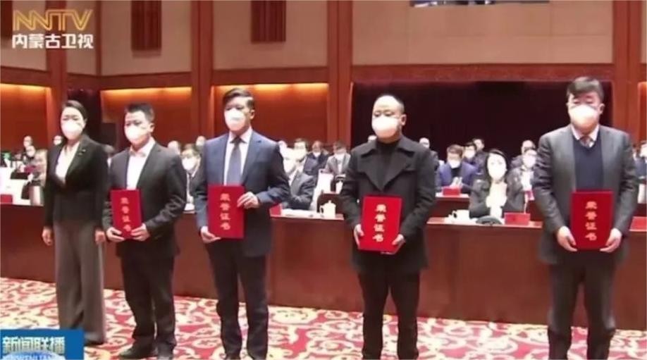 山东省内蒙古商会会长韩振涛(右二)代表商会领取荣誉证书