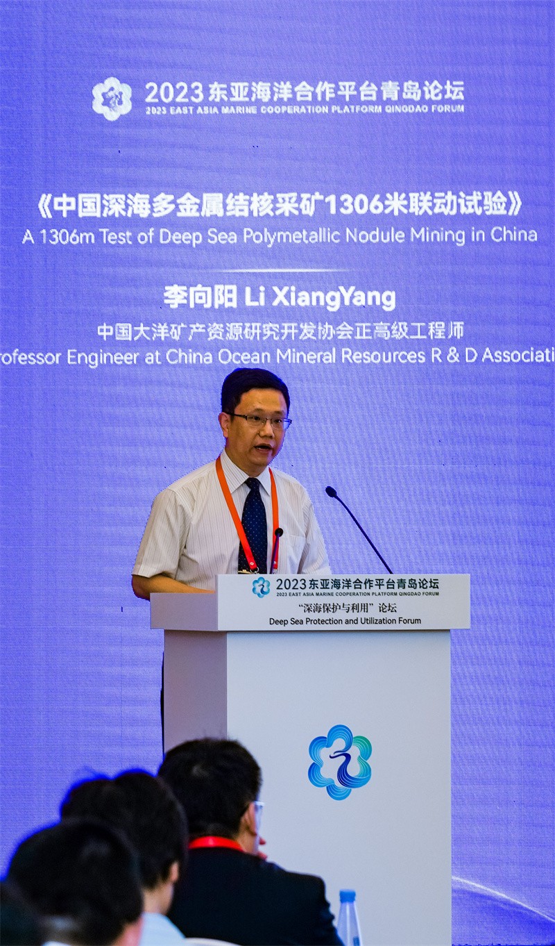 对于深海资源可持续利用议题,中国大洋协会办公室正高级工程师李向阳介绍了我国深海多金属结核采矿1300米试验进展,中国五矿集团长沙矿冶院董事长李茂林介绍了我国在深海采矿装备开发方面的总体情况,比利时GSR公司总经理克里斯·范·尼扬分享了基于预防性方法的结核采集装备开发与应用情况,自然资源部海洋一所研究员石学法围绕深海稀土的全球分布、资源潜力与利用前景做了分享与交流。