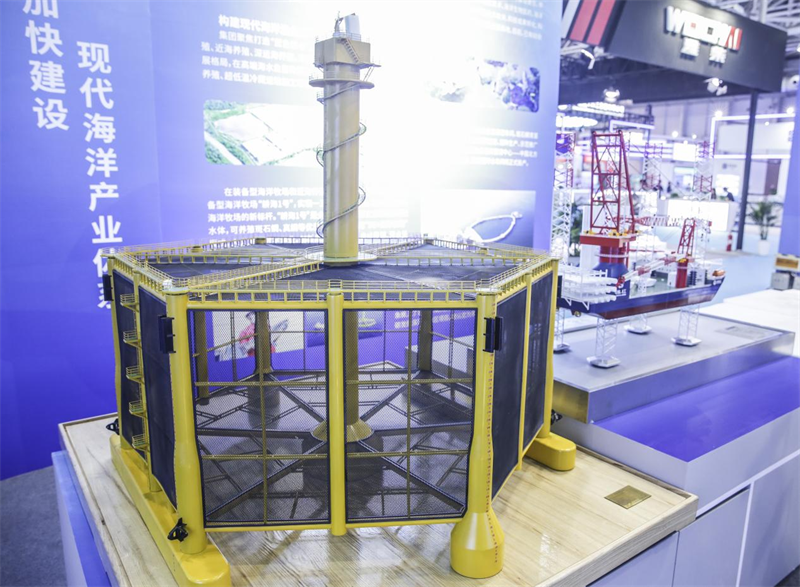 除了这一钻井平台,在去年东亚海博会上惊艳全场的“深蓝1号”网箱,如今,迎来了它的2.0版本——“深蓝2号”。据介绍,“深蓝2号”是基于“深蓝1号”的更新升级产品,单个网箱养殖水体为9万立方米,使用寿命增至30年,分别较“深蓝1号”扩大80%、延长50%。自动化、智能化、信息化程度显著提高,年养殖产能可达1800吨。
