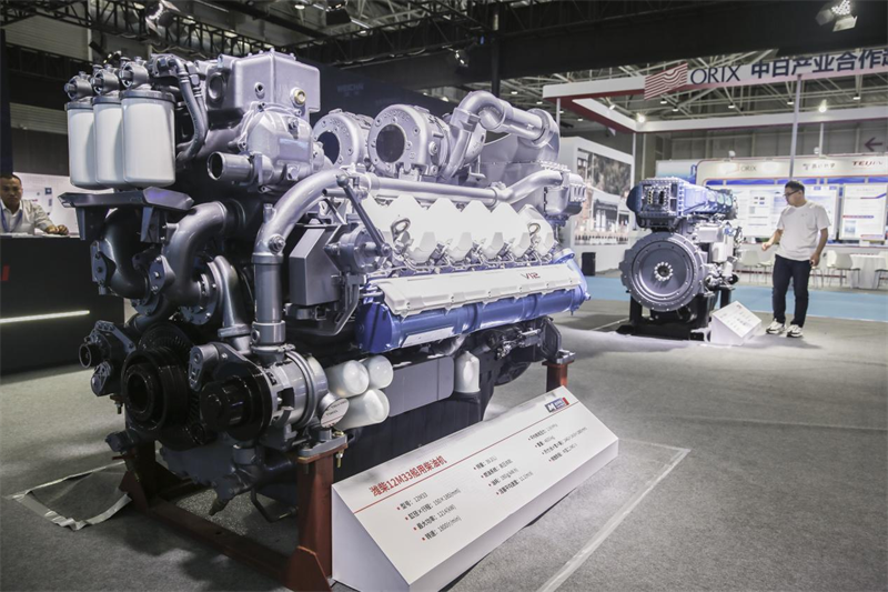 在本届展会上,潍柴集团则带来了船用发动机。作为大型船舶的“心脏”,潍柴集团带来了WP、WH、M三大系列的代表作品。“这台发动机的型号是6WH17,WH系列产品采用全新结构设计,各项指标全面提升,可满足中国二阶段排放要求。功率从400千瓦到4500千瓦,适用于渔船、运输船、沙船、拖轮等船舶推进主、辅机,还可用于油田市场机械驱动及发电。”潍柴集团总经理助理尹晓青指着一台接近一人高、四五个人合抱大小的发动机,告诉记者。此外,还有M系列产品功率从368千瓦到10000千瓦,适用于游艇、执法艇、特种艇、风电运维、海工平台等主推进柴油机和发电机组。