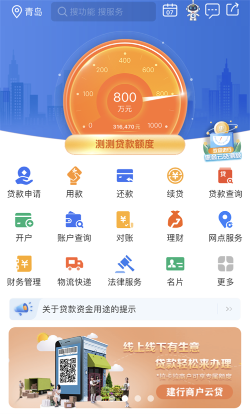 “建行惠懂你”APP的优势:一站式、纯信用、 额度高、 速度快 、可循环成本低。