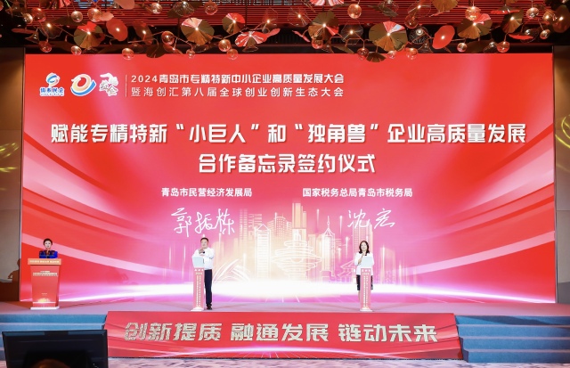 中小企业服务工作涉及方方面面,既要注重上下资源整合,也要做好左右服务协同,构建“横到边、竖到底”的网格化服务体系。会上,青岛市民营经济发展局、国家税务总局青岛市税务局共同签署了《赋能专精特新“小巨人”和“独角兽”企业高质量发展合作备忘录》,市税务局发布相关内容,双方进一步完善常态化合作机制,持续提升服务效能,在惠企政策、助企服务上协同用力,一体推进,精准高效助力企业转型升级、行稳致远。浙商银行现场发布“星火计划”科创企业服务包,为专精特新企业创新发展提供金融活水。