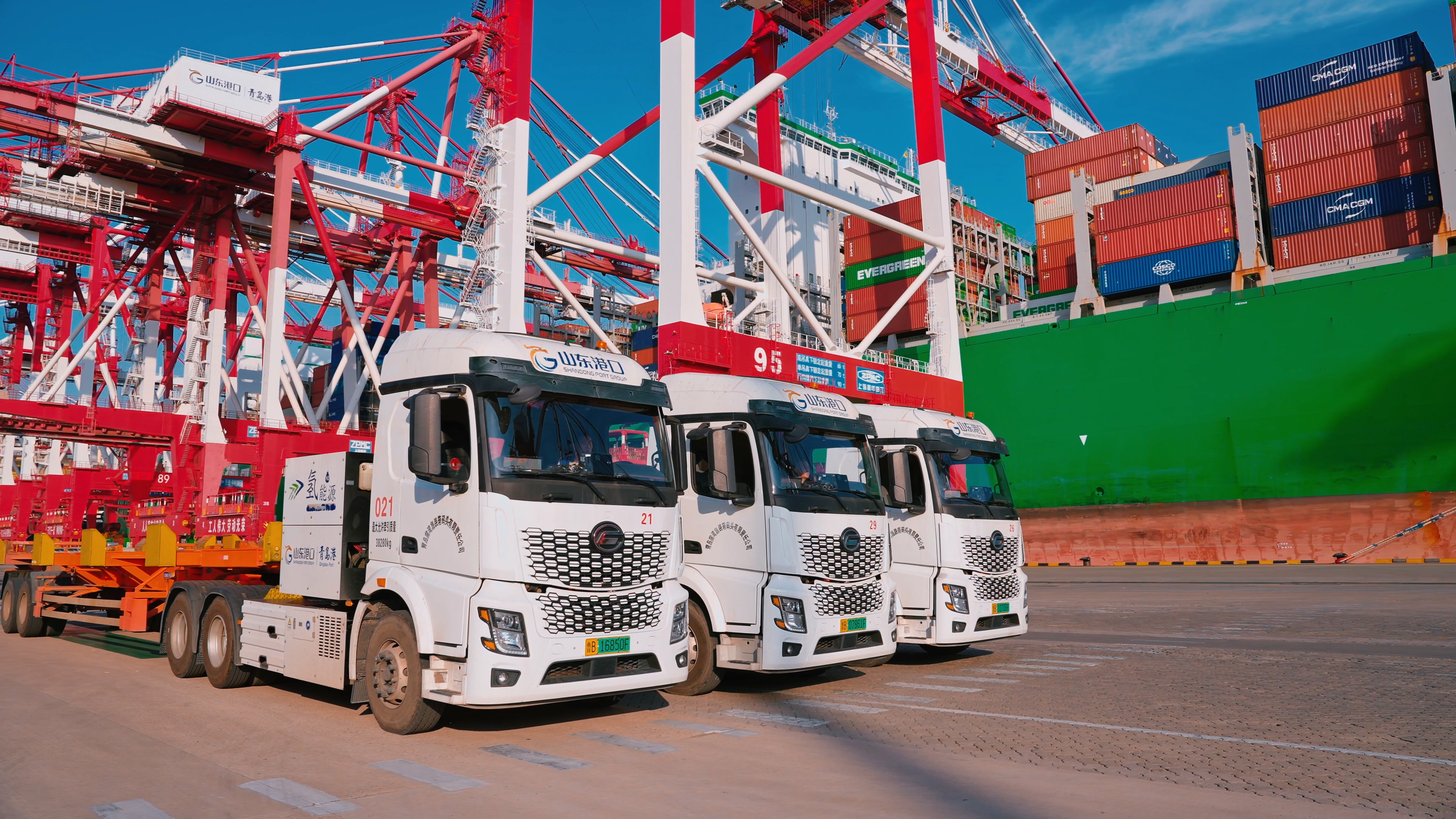 这背后,是青岛港集装箱领域的全链条、多层次绿色发展布局。在战略规划上,青岛港推行集装箱一体化运营模式,高点站位、系统制定绿色低碳转型规划方案,发布“碳中和”港口评价标准,推动三大核心作业码头绿色标准统一、技术共享;在能源转型上,全力推进集装箱作业区清洁能源替代,规模化投用氢动力轨道吊、电动牵引车等新能源装备,建成全国港口首座加氢站,全面升级岸电设施,岸电接电屡创新高,实现了高效运营与节能减排“双向提升”。